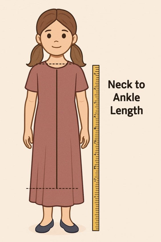 If a Girls Cape is required, measure the child from her Neck to Ankle length as shown on the image below.